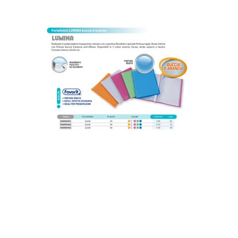 Portalistini fogli fissi Favorit buccia d'arancia 22x30 cm 40 buste assortiti 400090482