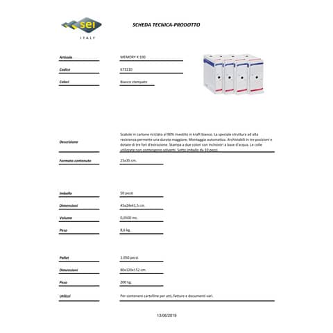 Scatola archivio Sei Rota Memory X File 56x37 cm dorso 27,5 cm bianco 673200