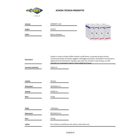 Possono contenere: 6 Memory X dorso 8 cm, 5 Memory X dorso 10 cm, 4 Memory X dorso 12 cm, 3 Memory X dorso 15 cm oppure 3 Memory XL A3. Formato 56x37x27,5 cm.