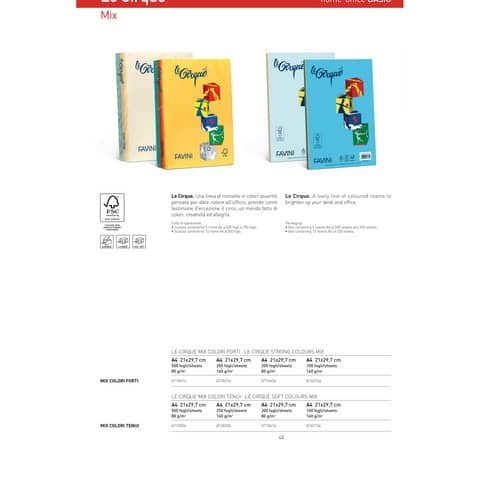 Le Cirque: 80 gr. 500 fogli. Una linea pensata per dare colore all'ufficio, prende come testimone d'eccezione il circo, un mondo fatto di colori, creatività ed allegria.