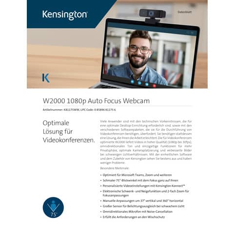 Webcam con autofocus Kensington W2000 1080p K81175WW