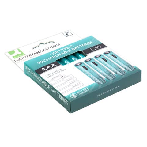 Batterie ricaricabili Q-Connect AAA con cavo USB-C - 750 mAh - 1,5V conf. 4 pz in blister - KF14130
