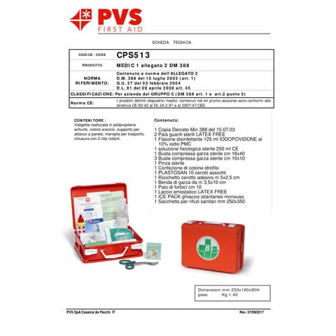 Contenuto a norma del DM 388 del 15/07/2003 allegato 2 e D.L. 81 del 09/04/08 art.45. Per aziende del gruppo A e B e comunque con tre o più lavoratori.