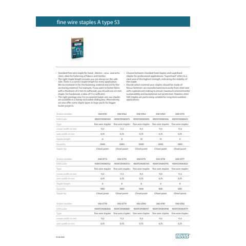 Punti tipo A 53/4 Novus per fissatrice conf. 1800 pz - a filo sottile H205304